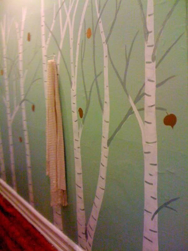 I still have some pictures to buy frames for and then I'll hang them. I'm also keeping my eyes open for a new rug. Claire is planning to paint the radiator bright red as a contrast. Claire and I were also thinking about doing something like this to the wall above my headboard. This is done with puzzle pieces painted gold. I'm thinking puzzle pieces painted silver would look nice with the paint color in my room.